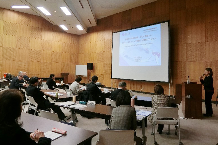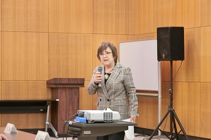 BENTON Caroline F. 副学長(国際担当)からの開催挨拶、また、文部科学省高等教育局高等教育企画課より吉岡路専門官からの来賓挨拶後、本学人文社会系教授の箕輪真理プログラム実施委員会委員長から、プログラムの概略及び成果報告と今後の展望について説明があり、その後、本プログラムによる中南米地域に留学または短期研修を終えた派遣学生2名及び現在本学にてメキシコより受け入れている学生1名による成果発表がありました。さらに、チリ大学での留学を経て、チリにおいて就職した元プログラム生からビデオレターによる成果及び近況報告がありました。