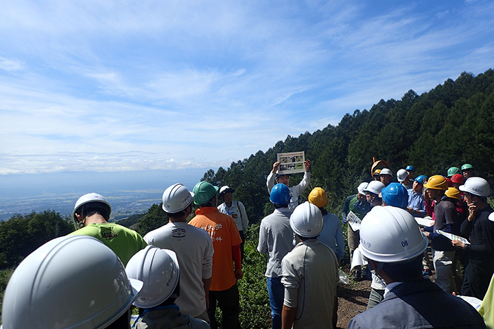 (浅間山山麓における中部森林管理局職員による森林育成に関する実習風景)