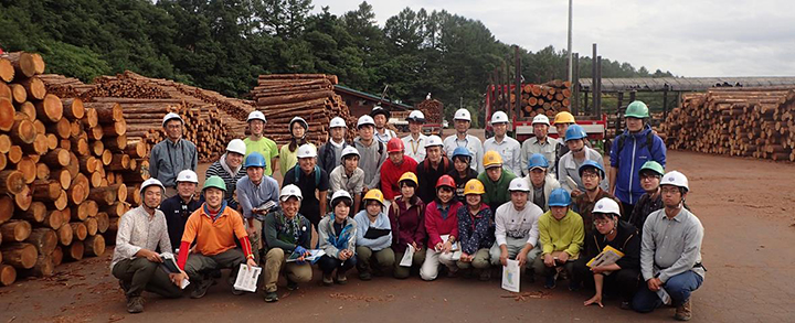 毎年9月に開催し、4大学の学生が参加する山岳科学フィールド実習・森林圏総合演習では、中部森林管理局の協力の下、浅間山山麓のカラマツ林において、種子の採取、苗の植え付け、下刈り、精英樹(形質の優れた個体)の選抜と育種的利用、さらにはシカなどの獣害管理の現場を学びました。また、東信木材センター(長野県小諸市)では、伐採されたカラマツの木材としての流通やその経済効率などについても学びました。参加学生にとっては、通常の授業では体験できない森林や林業の現場を知り、また現場で活躍している林野庁職員との交流や意見交換により、森林管理や林野行政への理解を深める機会となりました。