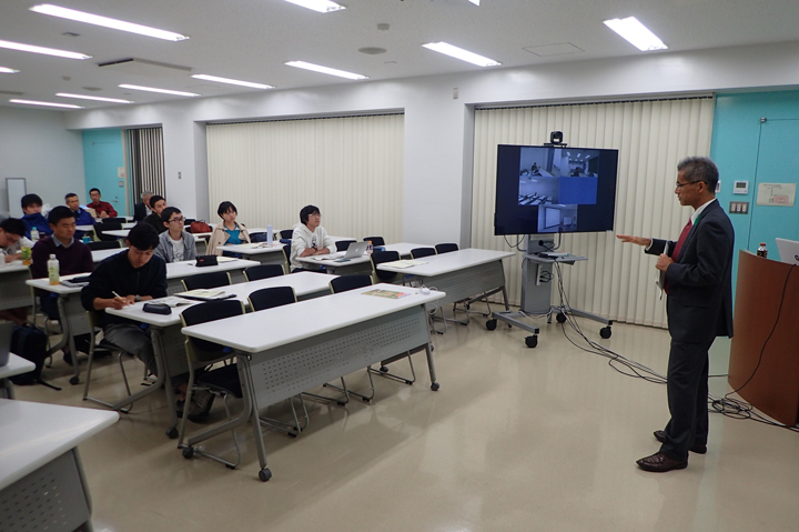(関東森林管理局森林整備部長による山岳科学教養論の講義は遠隔講義システムにより4大学の学生により受講されました)