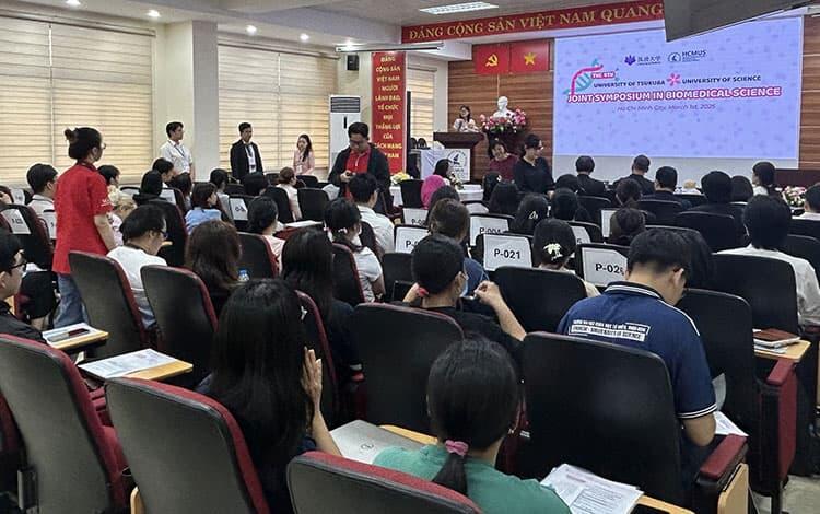 3月1日、ベトナムホーチミン市のベトナム国家大学ホーチミン市校自然科学大学において、第4回 Joint Symposium in Biomedical Scienceを開催しました。ベトナム国家大学ホーチミン市校自然科学大学のDang Thi Phuong Thao 教授による基調講演の後、本学からは医学医療系の坂田 麻実子 教授が基調講演を行い、現地の学生や教員から熱心な質問を受けていました。 また、学生の研究発表では、本学の学生等も積極的に参加し、本学からは口頭発表に2名、ポスター発表に7名の学生が参加しました。